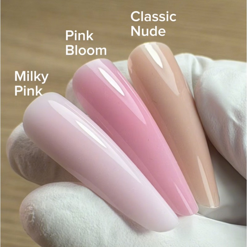 Studio Gel Pink Bloom is a FIBER builder gel in a more vibrant pink shade. Recommended for delicate yet expressive nail styles. The formula is HEMA-free and provides optimal adhesion, even on problematic nail plates. Your clients will appreciate the no-burn sensation during polymerization, ensuring maximum comfort during application. The gel is easy to apply and refine, allowing you to create thin, durable nail enhancements with excellent control. If you love more intense pink tones, this shade will be the perfect choice for adding freshness and character to your nail designs.
