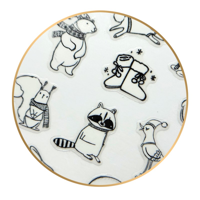 - Lakier do paznokci - naklejkę aplikuj na wyschnięty lakier do paznokci. Dla przedłużenia trwałości zabezpiecz stylizację warstwą lakieru nawierzchniowego typu top coat.